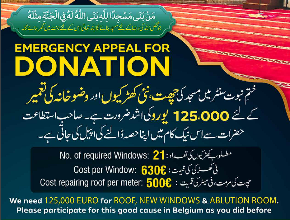 We need 125,000 EURO for ROOF, NEW WINDOWS & ABLUTION ROOM. Please participate for this good cause in Belgium as your did before.